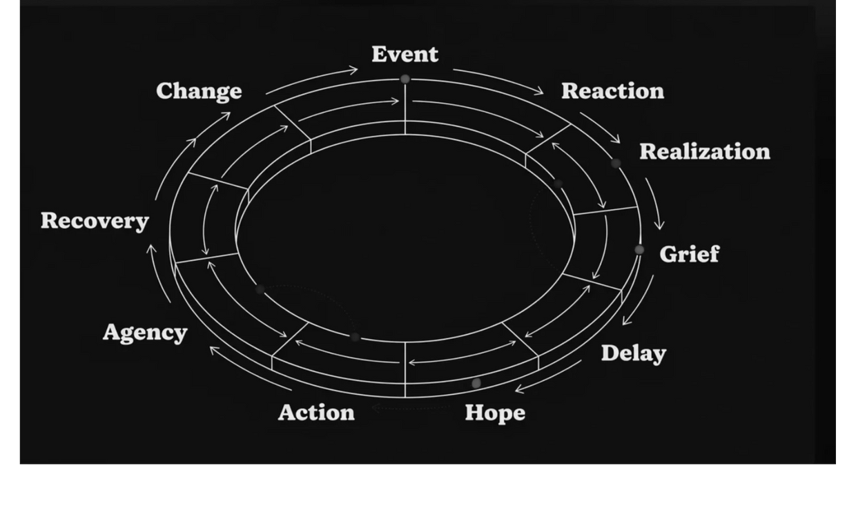 The pulses give shape to the field of change, but people may revisit them. Grief may return after action. Delay may come after hope. Recovery may happen in one part of life while grief remains in another.